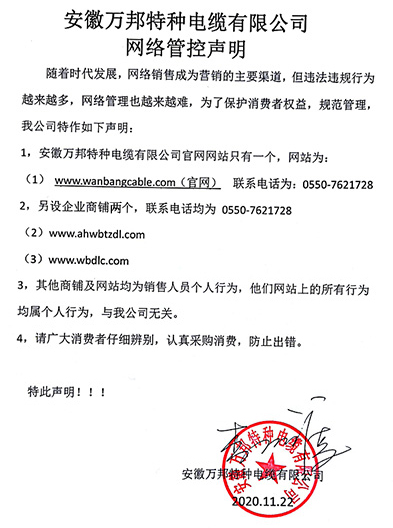 鄭重聲明:安徽萬邦特種電纜有限公司官方網站為:www_wanbangcable_com.xsyxcm.com,除此之外無任何子網站或合作網站,其余均為假冒偽劣。電話:0550-7621728 13485756353 地 址:安徽省天長市滁州高新技術產業開發區經四路29號